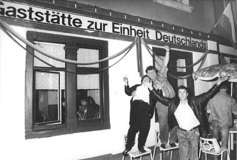 The fact that the inner-German border was open was a long-awaited stroke of good fortune. However, the flood of people leaving East Germany and the influx of goods into the country accelerated the collapse of East Germany as an independent system. The East German economy simply couldn’t compete with Western goods. Thus, the expectation, or perhaps the illusion, of a happy life according to West German standards became the driving force behind German reunification.